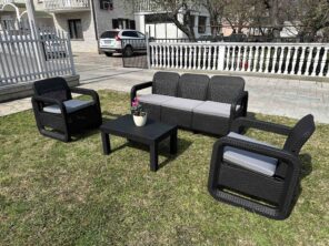 Sastoji se od dve udobne fotelje, troseda i praktičnog stola, idealnog za odlaganje pića, knjiga ili dekorativnih predmeta. Svaki element je pažljivo izrađen od kvalitetnog ratana, poznatog po svojoj otpornosti na vremenske uslove, što garantuje dug vek trajanja.