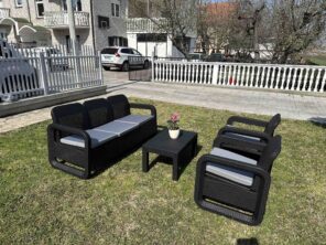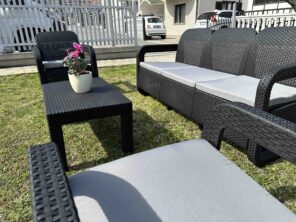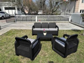 Unesite dašak elegancije i udobnosti u vaš vrt ili terasu sa baštenskom garniturom Lugano. Dizajnirana da spoji moderni stil sa praktičnošću, garnitura Lugano je idealan izbor za sve koji žele da uživaju na otvorenom.