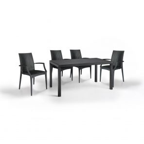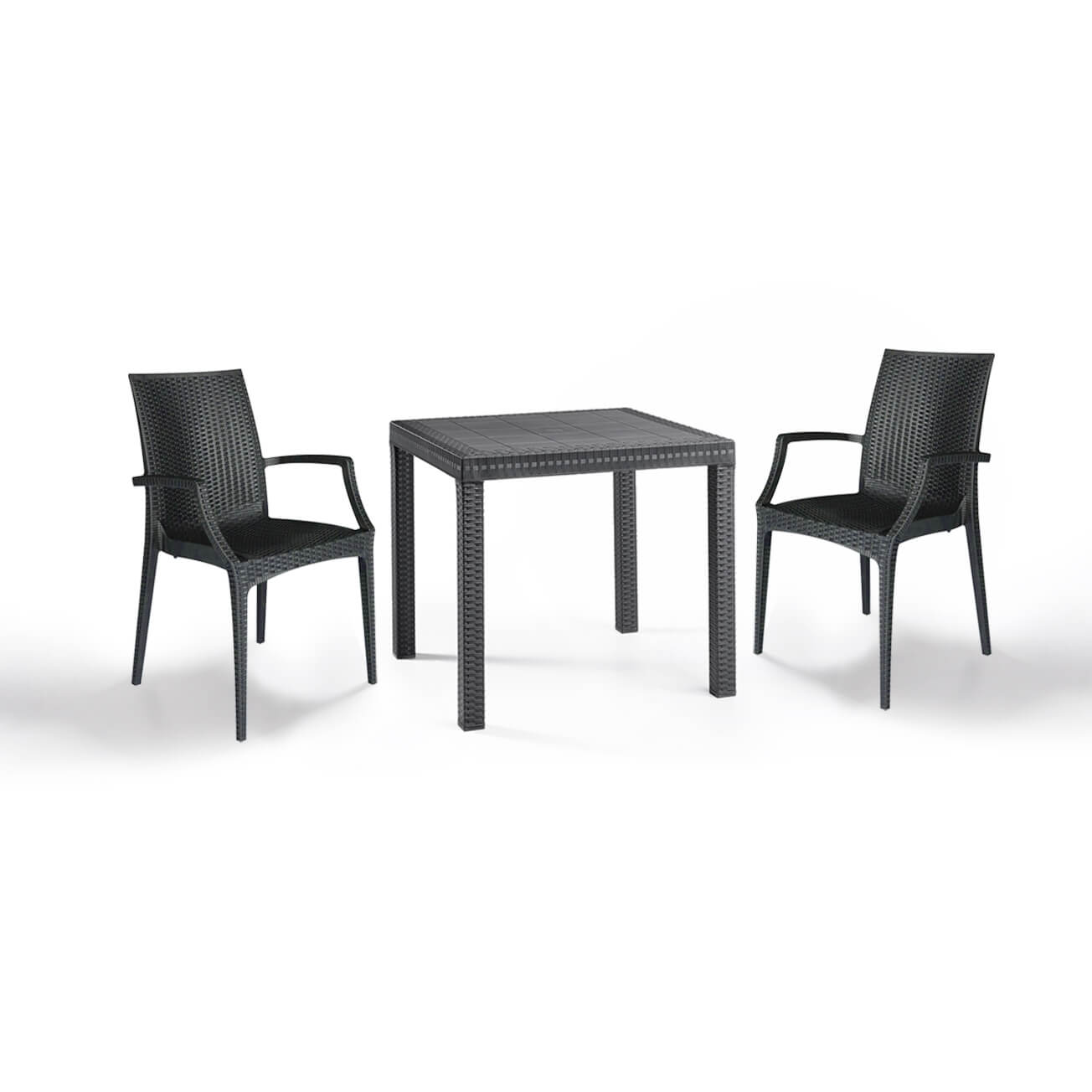 Baštenska garnitura Sto + 2 Bistrot stolice je otporna na sve vremenske uslove i zahteva minimalna održavanja sa garancijom dugotrajnosti, bez znakova starenja.