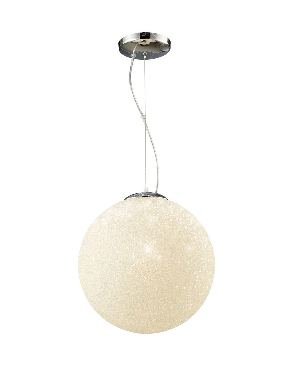Elegantna loptasta visilica sa plastičnom svetlucavom kuglom. Veoma efektna svetiljka koja je odličan dodatak svim prostorima.